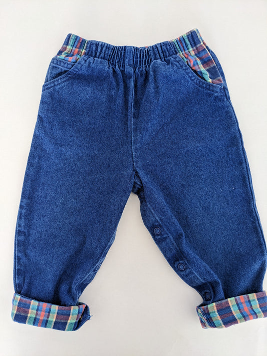 OshKosh b'Gosh vintage funny indigo and rainbow check pants